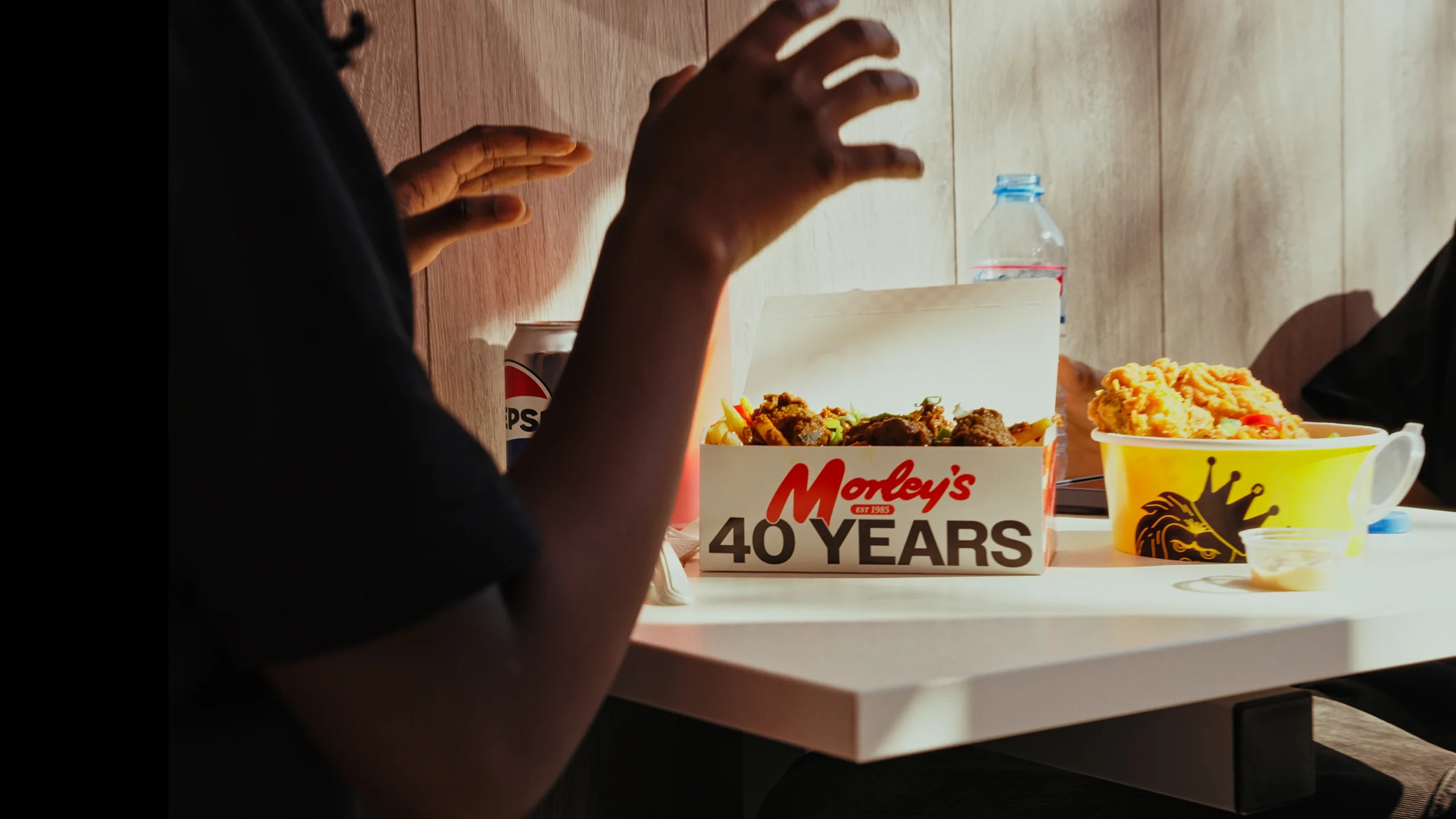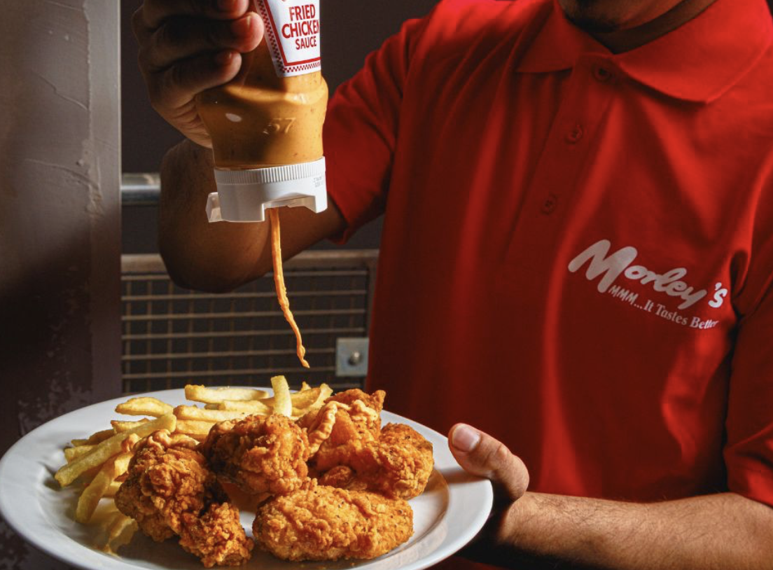 The exclusive menu features four dishes: Wings & Nasi Lah (nasi goreng, Morley’s wings, sambal and fried egg); Boss, Ayam Dua! (two-piece fried chicken with Roti King-spiced fries and peanut sauce); Sedap Wrap (chicken tenders in roti canai with achar salad); and vegan KL Dirty Fries with shiitake mushroom rendang. Limited-edition merchandise will also be available.