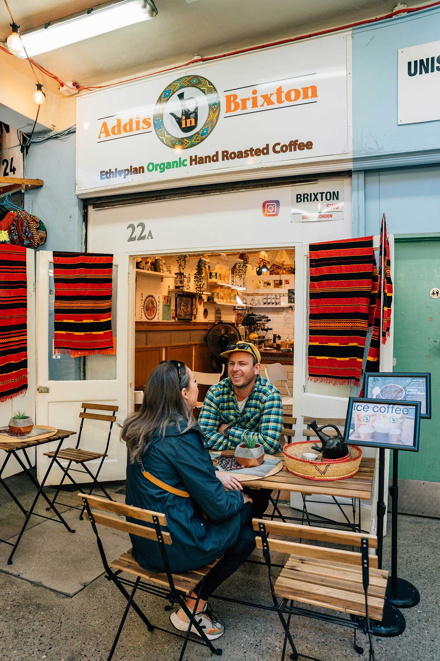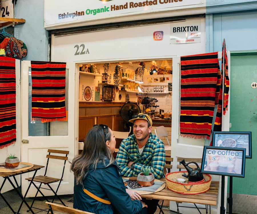 Priding itself on giving excellent service, Addis in Brixton serves ceremonial, hand roasted, high grade organic coffee, alongside an exciting rotating menu of vegetarian, vegan and gluten free options available in Market Row.